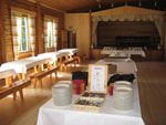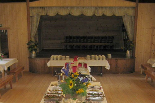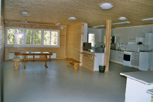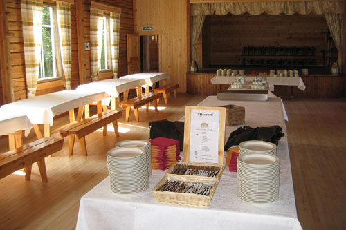 Tarvittavat pöydät ja penkit löytyvät salin puolelta: